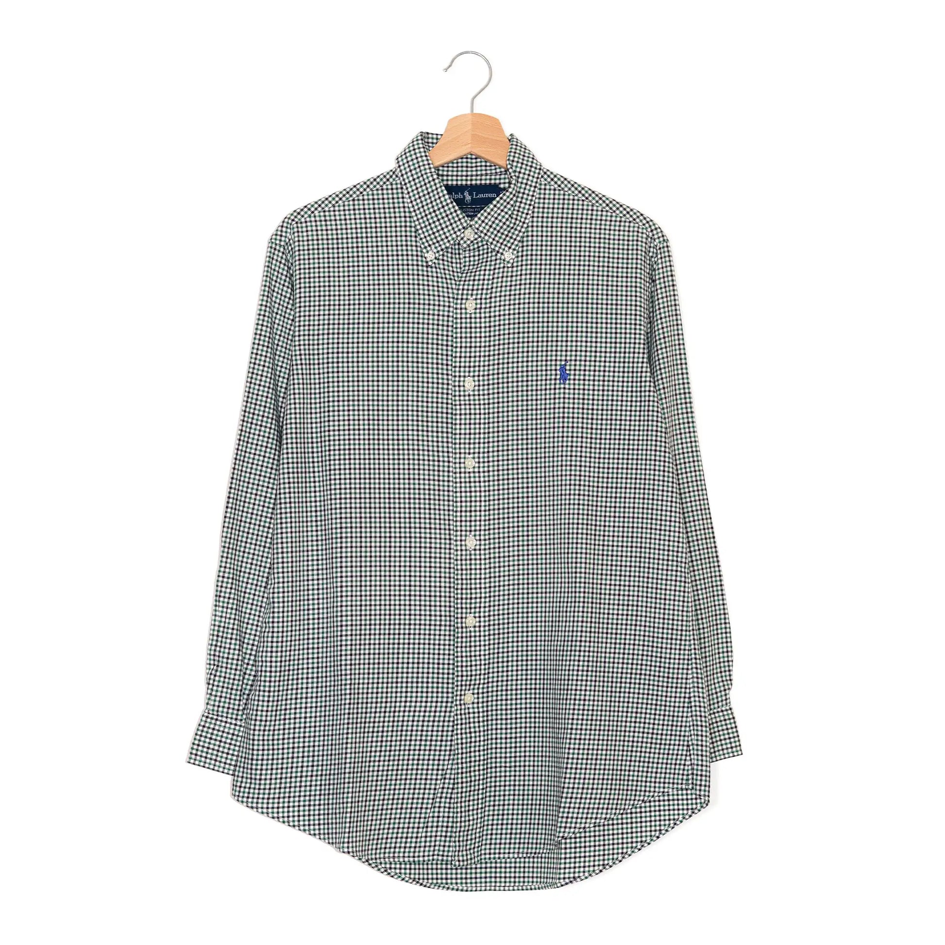 Camicia Ralph Lauren vintage a quadri bianchi e verdi, modello Custom Fit. Design classico con colletto button-down, maniche lunghe e logo ricamato sul petto. Realizzata in cotone, con una vestibilità più sagomata rispetto al modello classico, pensata per chi cerca uno stile pulito ma sempre comodo.