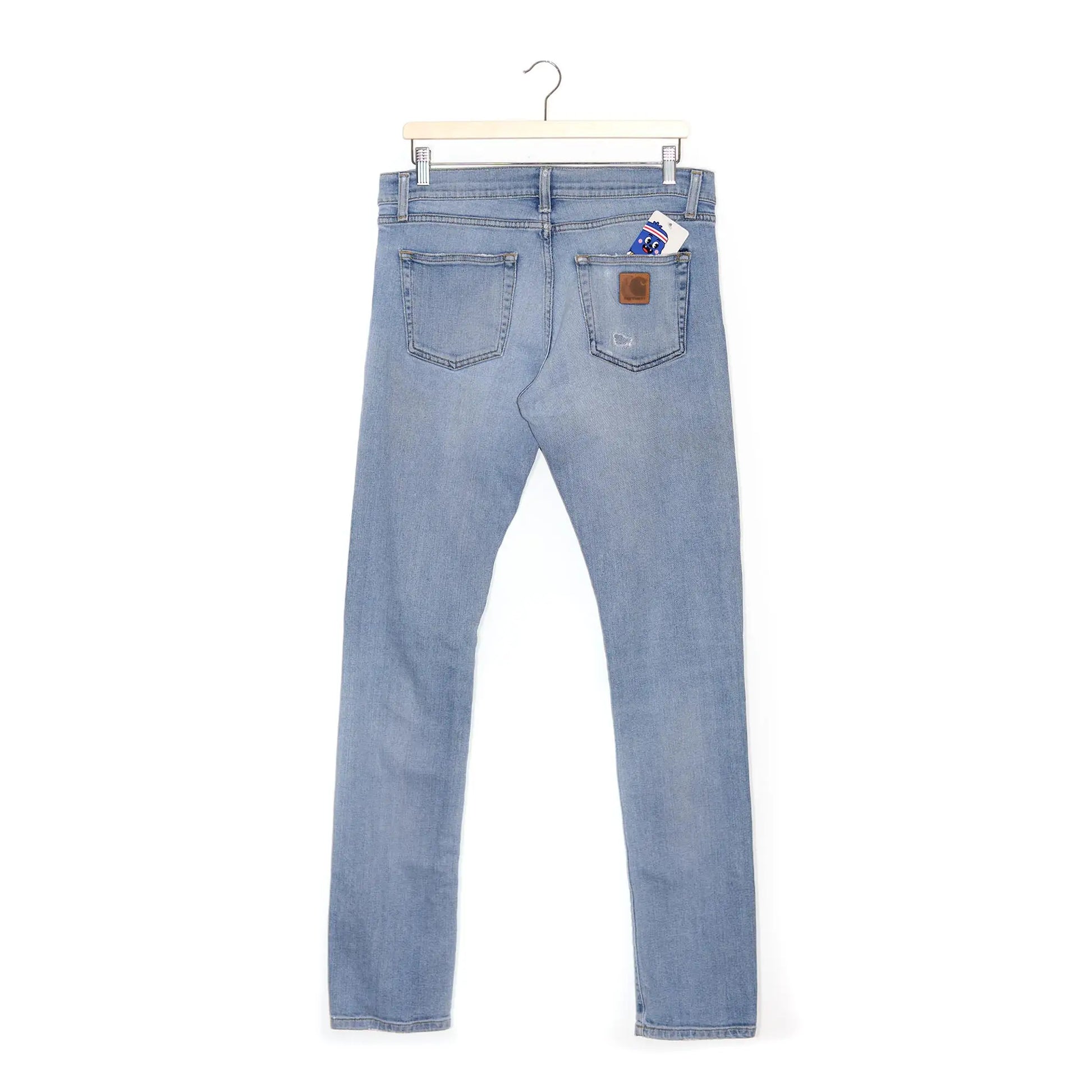 Carhartt WIP Rebel Jeans in denim chiaro, taglio slim fit. Un modello iconico della linea Work In Progress che unisce lo stile workwear del brand a una vestibilità moderna e versatile. Dettaglio patch Carhartt in pelle sulla tasca posteriore.